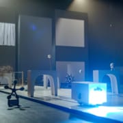 Une lampe LED fixée à l’avant balaye l’espace provoque un effet d’ombres chinoises sur les parois de la salle tandis qu’un micro-canon fixé sur le dessus permet d’amplifier les sons du parcours.